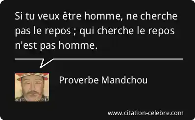 Proverbe  Mandchou Homme : Si tu veux être homme, ne cherche pas le repos...