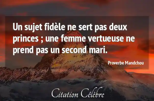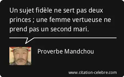 Proverbe  Mandchou Femme : Un sujet fidèle ne sert pas deux princes ; une...
