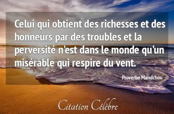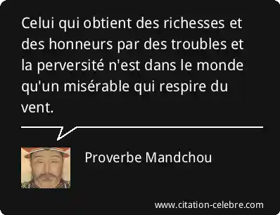 Celui qui obtient des richesses et des honneurs par des troubles et la perversité n'est dans le monde qu'un misérable qui respire du vent.