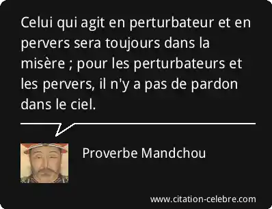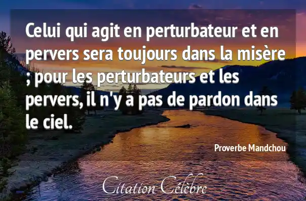 Celui qui agit en perturbateur et en pervers sera toujours dans la misère ; pour les perturbateurs et les pervers, il n'y a pas de pardon dans le ciel.
