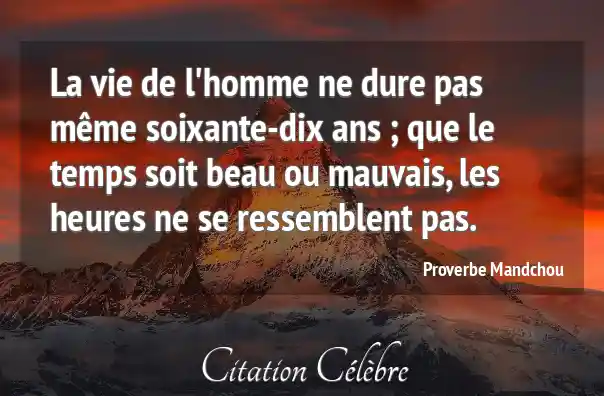 La vie de l'homme ne dure pas même soixante-dix ans ; que le temps soit beau ou mauvais, les heures ne se ressemblent pas.