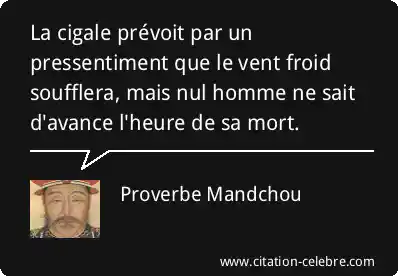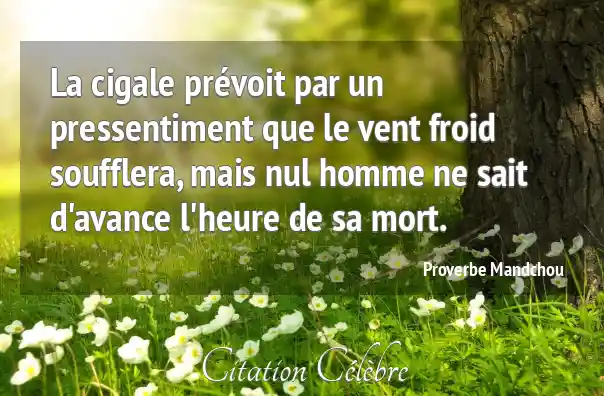 La cigale prévoit par un pressentiment que le vent froid soufflera, mais nul homme ne sait d'avance l'heure de sa mort.