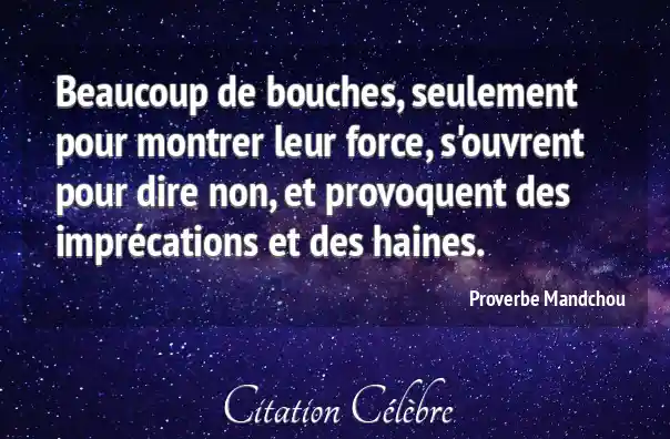 Beaucoup de bouches, seulement pour montrer leur force, s'ouvrent pour dire non, et provoquent des imprécations et des haines.