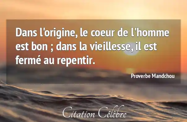 Dans l'origine, le coeur de l'homme est bon ; dans la vieillesse, il est fermé au repentir.