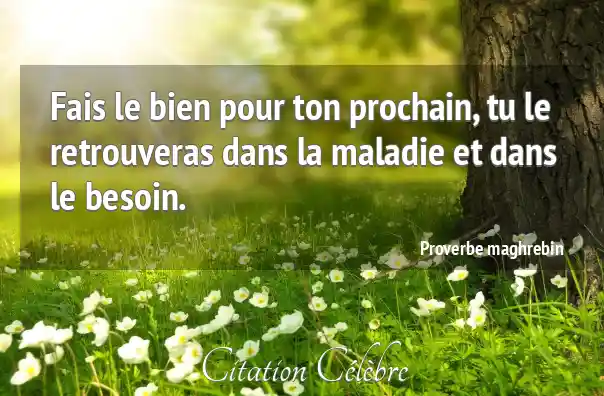 Fais le bien pour ton prochain, tu le retrouveras dans la maladie et dans le besoin.