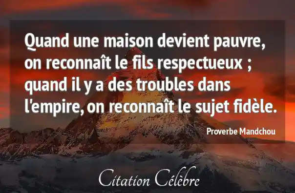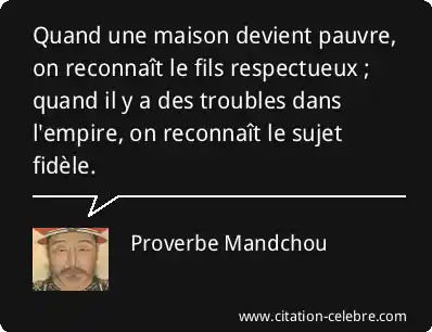 Quand une maison devient pauvre, on reconnaît le fils respectueux ; quand il y a des troubles dans l'empire, on reconnaît le sujet fidèle.