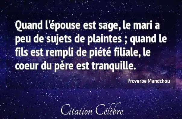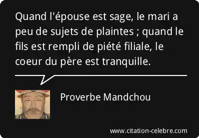Quand l'épouse est sage, le mari a peu de sujets de plaintes ; quand le fils est rempli de piété filiale, le coeur du père est tranquille.