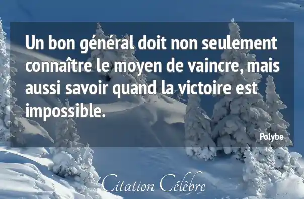 Un bon général doit non seulement connaître le moyen de vaincre, mais aussi savoir quand la victoire est impossible.