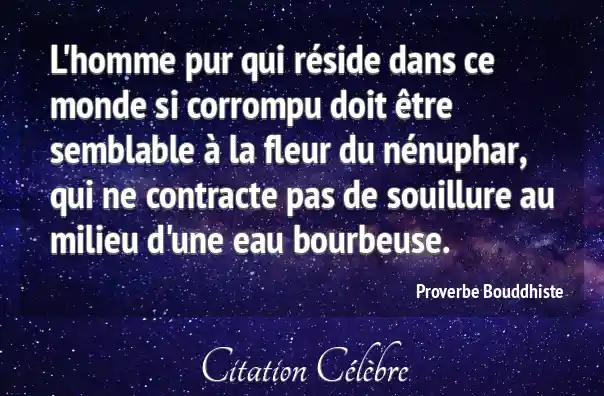 L'homme pur qui réside dans ce monde si corrompu doit être semblable à la fleur du nénuphar, qui ne contracte pas de souillure au milieu d'une eau bourbeuse.