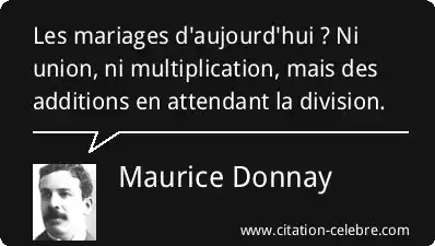 Les mariages d'aujourd'hui ? Ni union, ni multiplication, mais des additions en attendant la division.