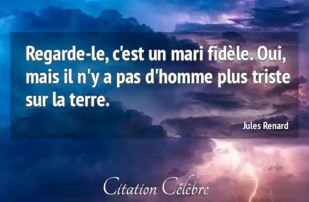 Regarde-le, c'est un mari fidèle. Oui, mais il n'y a pas d'homme plus triste sur la terre.