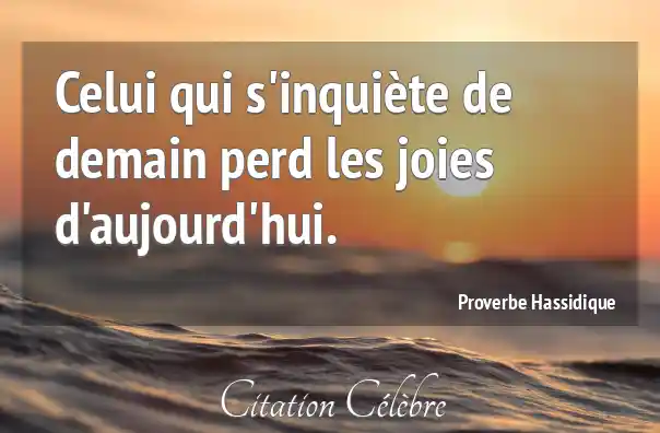 Celui qui s'inquiète de demain perd les joies d'aujourd'hui.