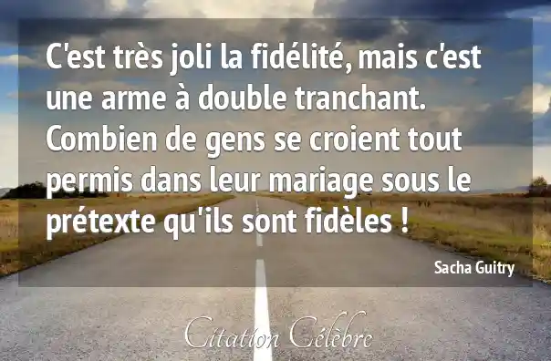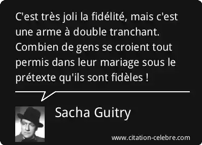 C'est très joli la fidélité, mais c'est une arme à double tranchant. Combien de gens se croient tout permis dans leur mariage sous le prétexte qu'ils sont fidèles !