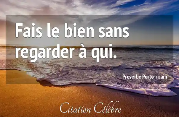 Proverbe  Porto-ricain Bien : Fais le bien sans regarder à qui....