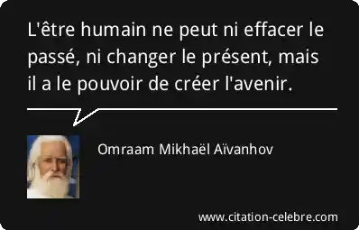 L'être humain ne peut ni effacer le passé, ni changer le présent, mais il a le pouvoir de créer l'avenir.