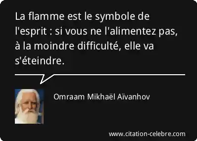 La flamme est le symbole de l'esprit : si vous ne l'alimentez pas, à la moindre difficulté, elle va s'éteindre.