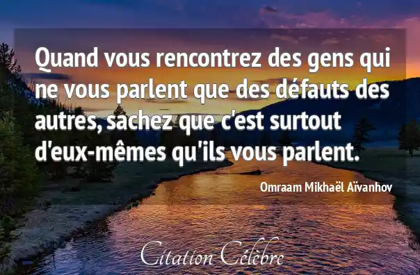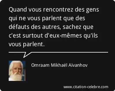 Quand vous rencontrez des gens qui ne vous parlent que des défauts des autres, sachez que c'est surtout d'eux-mêmes qu'ils vous parlent.