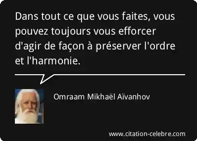 Dans tout ce que vous faites, vous pouvez toujours vous efforcer d'agir de façon à préserver l'ordre et l'harmonie.
