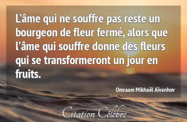 L'âme qui ne souffre pas reste un bourgeon de fleur fermé, alors que l'âme qui souffre donne des fleurs qui se transformeront un jour en fruits.