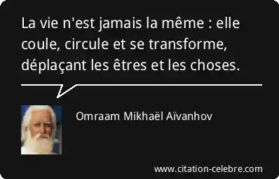 La vie n'est jamais la même : elle coule, circule et se transforme, déplaçant les êtres et les choses.