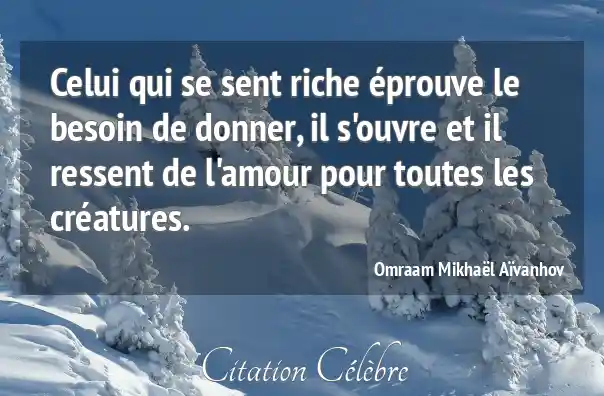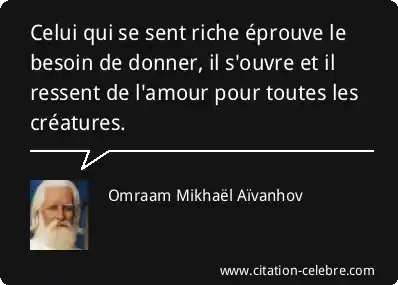 Celui qui se sent riche éprouve le besoin de donner, il s'ouvre et il ressent de l'amour pour toutes les créatures.