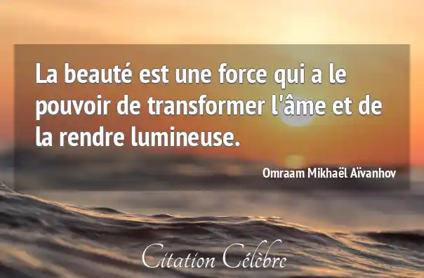La beauté est une force qui a le pouvoir de transformer l'âme et de la rendre lumineuse.