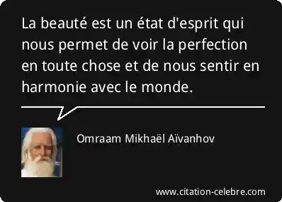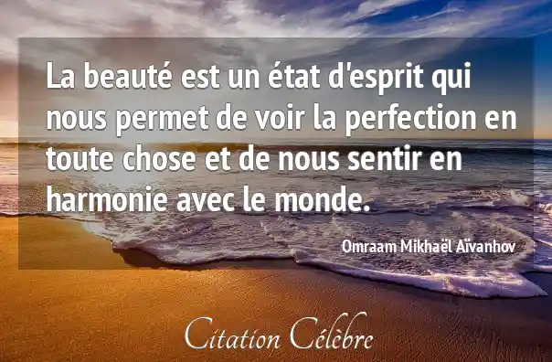 La beauté est un état d'esprit qui nous permet de voir la perfection en toute chose et de nous sentir en harmonie avec le monde.