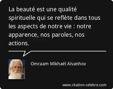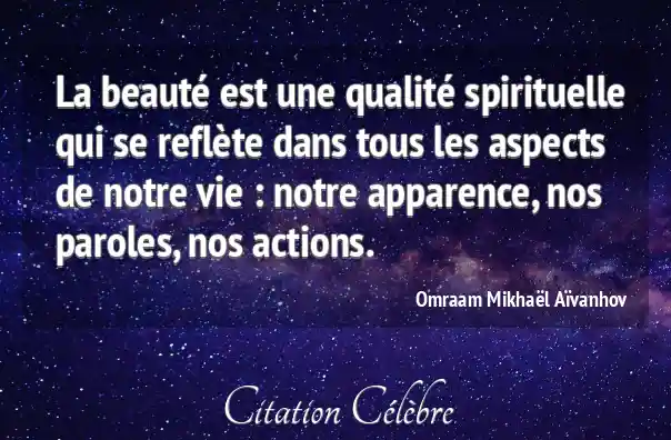 La beauté est une qualité spirituelle qui se reflète dans tous les aspects de notre vie : notre apparence, nos paroles, nos actions.