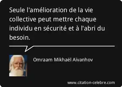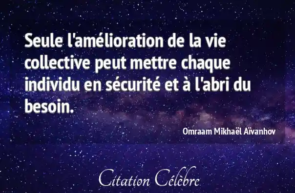 Seule l'amélioration de la vie collective peut mettre chaque individu en sécurité et à l'abri du besoin.