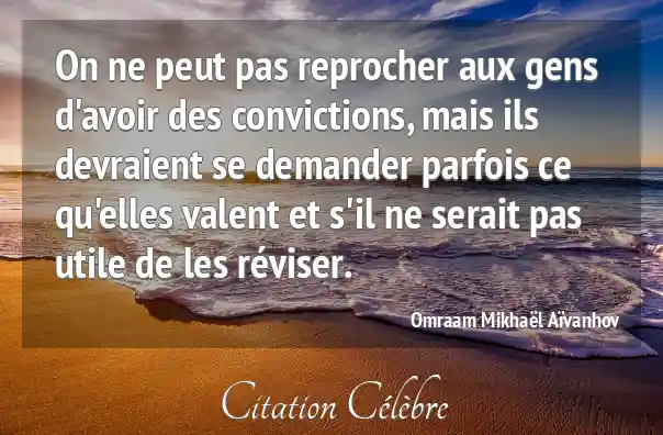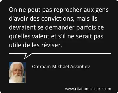 On ne peut pas reprocher aux gens d'avoir des convictions, mais ils devraient se demander parfois ce qu'elles valent et s'il ne serait pas utile de les réviser.
