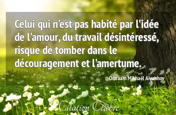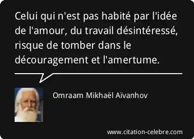 Celui qui n'est pas habité par l'idée de l'amour, du travail désintéressé, risque de tomber dans le découragement et l'amertume.