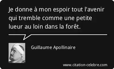 Je donne à mon espoir tout l'avenir qui tremble comme une petite lueur au loin dans la forêt.