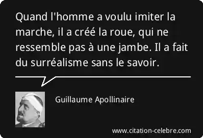Quand l'homme a voulu imiter la marche, il a créé la roue, qui ne ressemble pas à une jambe. Il a fait du surréalisme sans le savoir.