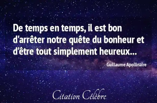 De temps en temps, il est bon d'arrêter notre quête du bonheur et d'être tout simplement heureux...