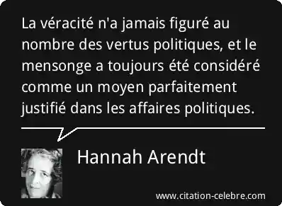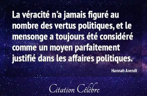 La véracité n'a jamais figuré au nombre des vertus politiques, et le mensonge a toujours été considéré comme un moyen parfaitement justifié dans les affaires politiques.