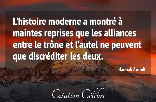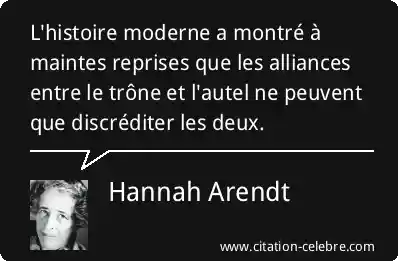 L'histoire moderne a montré à maintes reprises que les alliances entre le trône et l'autel ne peuvent que discréditer les deux.