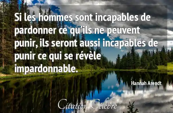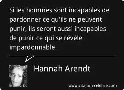 Si les hommes sont incapables de pardonner ce qu'ils ne peuvent punir, ils seront aussi incapables de punir ce qui se révèle impardonnable.