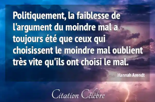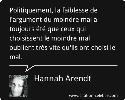 Politiquement, la faiblesse de l'argument du moindre mal a toujours été que ceux qui choisissent le moindre mal oublient très vite qu'ils ont choisi le mal.