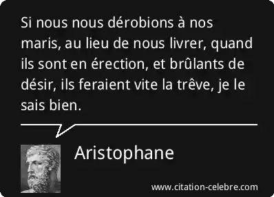 Si nous nous dérobions à nos maris, au lieu de nous livrer, quand ils sont en érection, et brûlants de désir, ils feraient vite la trêve, je le sais bien.