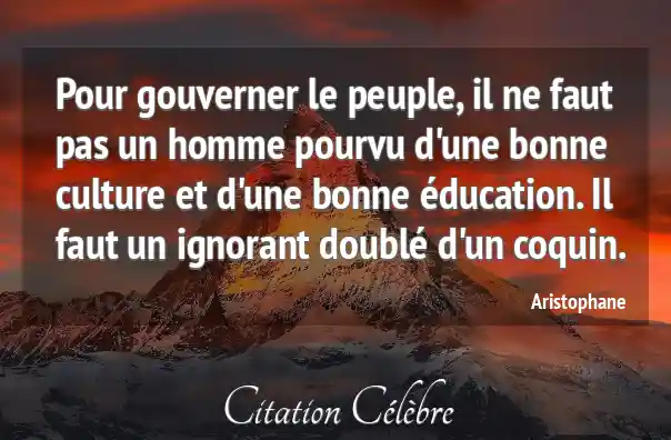 Pour gouverner le peuple, il ne faut pas un homme pourvu d'une bonne culture et d'une bonne éducation. Il faut un ignorant doublé d'un coquin.