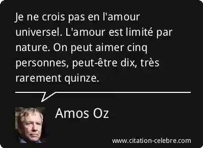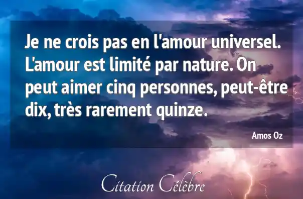 Je ne crois pas en l'amour universel. L'amour est limité par nature. On peut aimer cinq personnes, peut-être dix, très rarement quinze.