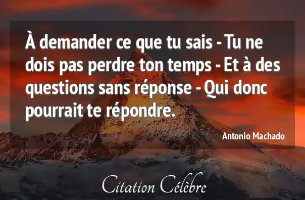 À demander ce que tu sais - Tu ne dois pas perdre ton temps - Et à des questions sans réponse - Qui donc pourrait te répondre.