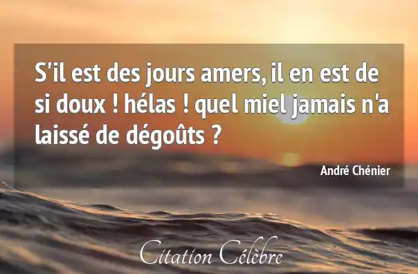 S'il est des jours amers, il en est de si doux ! hélas ! quel miel jamais n'a laissé de dégoûts ?