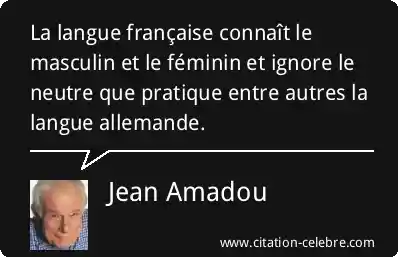 La langue française connaît le masculin et le féminin et ignore le neutre que pratique entre autres la langue allemande.