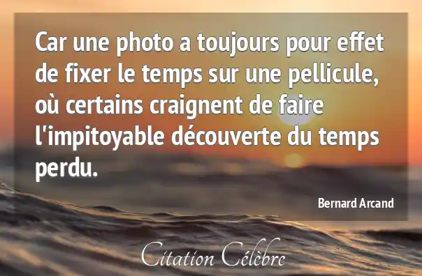 Car une photo a toujours pour effet de fixer le temps sur une pellicule, où certains craignent de faire l'impitoyable découverte du temps perdu.