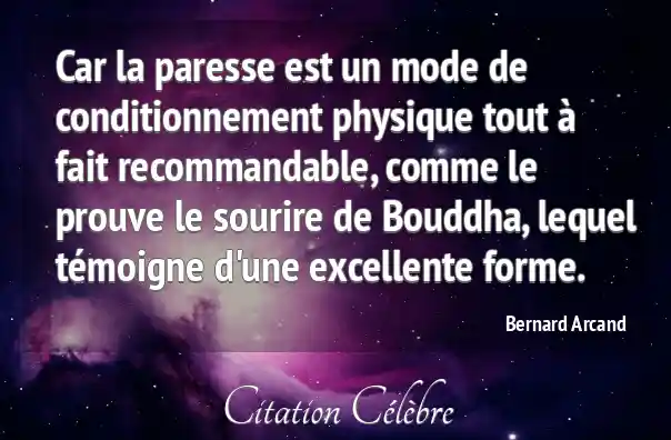 Car la paresse est un mode de conditionnement physique tout à fait recommandable, comme le prouve le sourire de Bouddha, lequel témoigne d'une excellente forme.