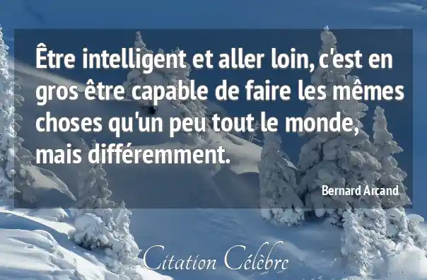 Être intelligent et aller loin, c'est en gros être capable de faire les mêmes choses qu'un peu tout le monde, mais différemment.