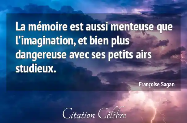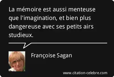 La mémoire est aussi menteuse que l'imagination, et bien plus dangereuse avec ses petits airs studieux.