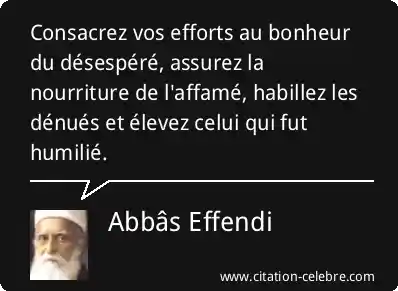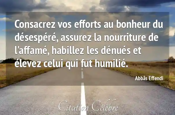 Consacrez vos efforts au bonheur du désespéré, assurez la nourriture de l'affamé, habillez les dénués et élevez celui qui fut humilié.
