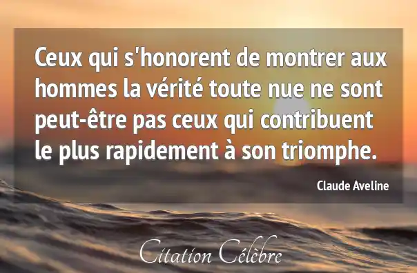 Ceux qui s'honorent de montrer aux hommes la vérité toute nue ne sont peut-être pas ceux qui contribuent le plus rapidement à son triomphe.